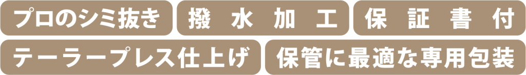 - 全品に防虫・防カビ・撥水加工付き(素材により不可品あり)